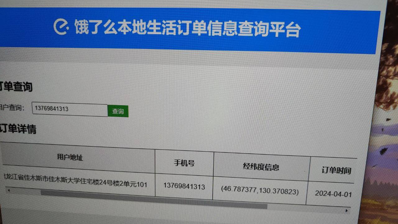 美团饿了么记录查询,包括下单地址和订单信息